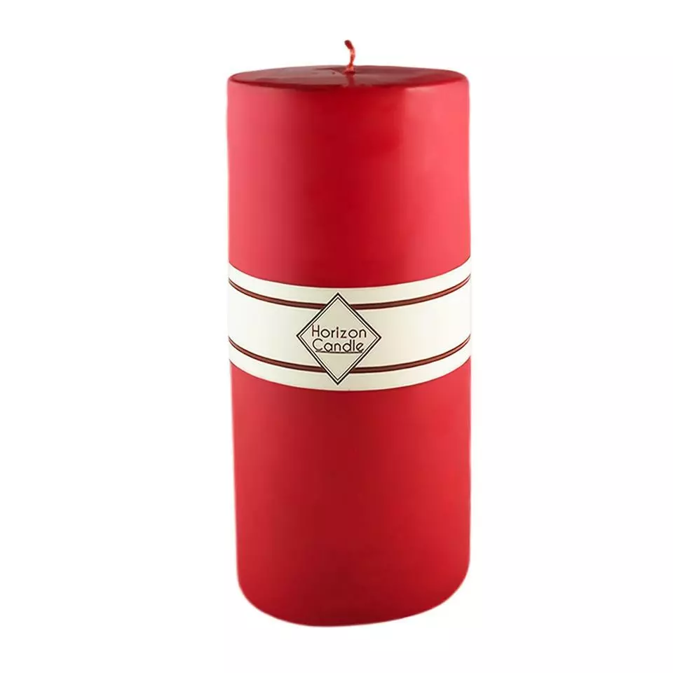 Дуже велика циліндрична свічка червоного кольору з часом горіння