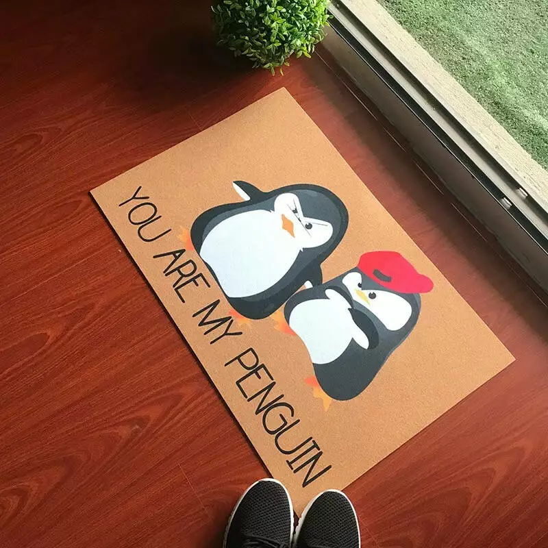 Придверний килимок з яскравим дизайном You are my penguin додасть