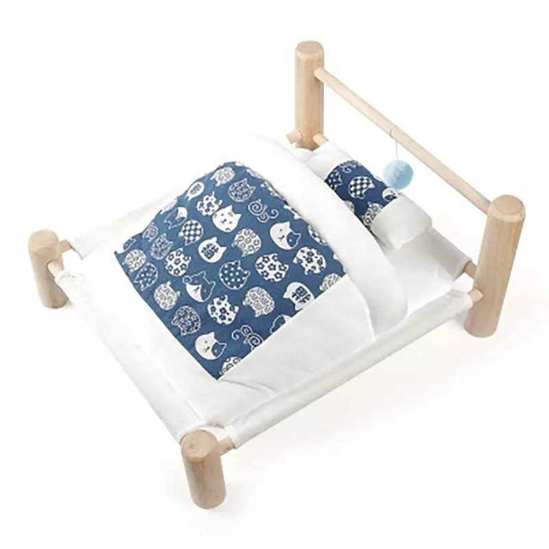 ковдрою, з подушкою, і з іграшкою на узголів'ї, щоб коту було чим