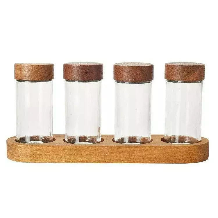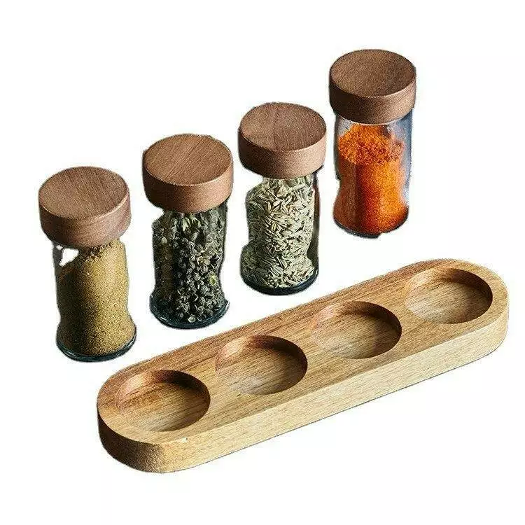 для спецій з дерев'яними кришками та вишуканим тацею з дерева, цей