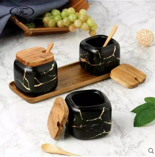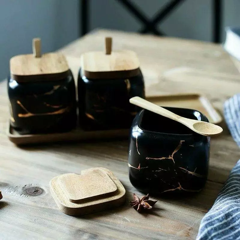 Кожна банка в комплекті чорного кольору поставляється з дерев'яною