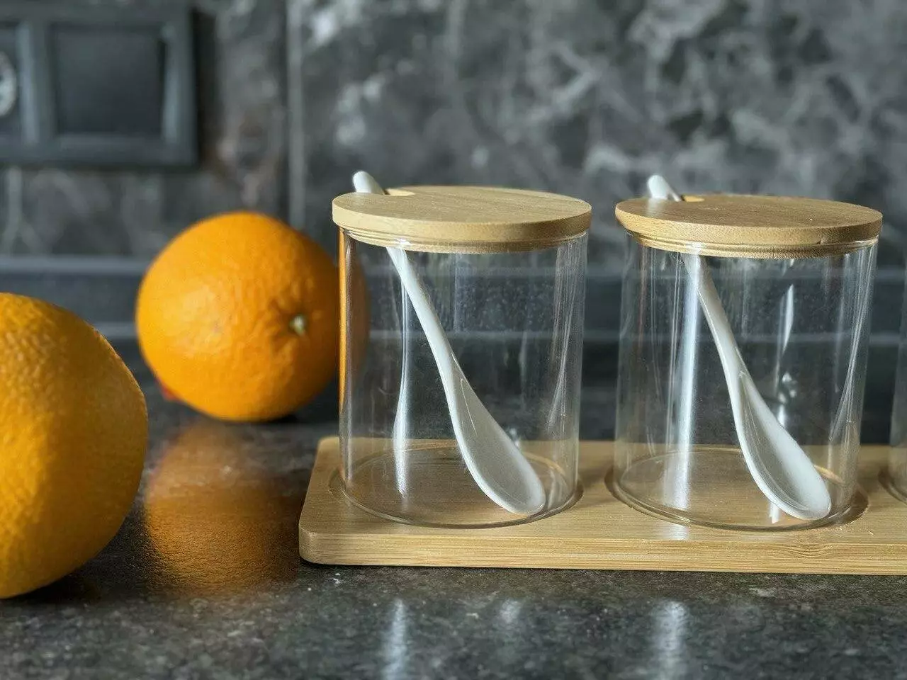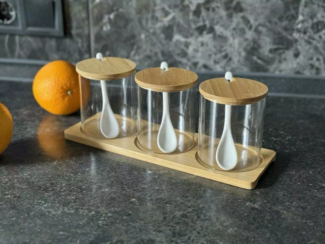 інгредієнтів. У комплект входять три стильні баночки з дерев'яними