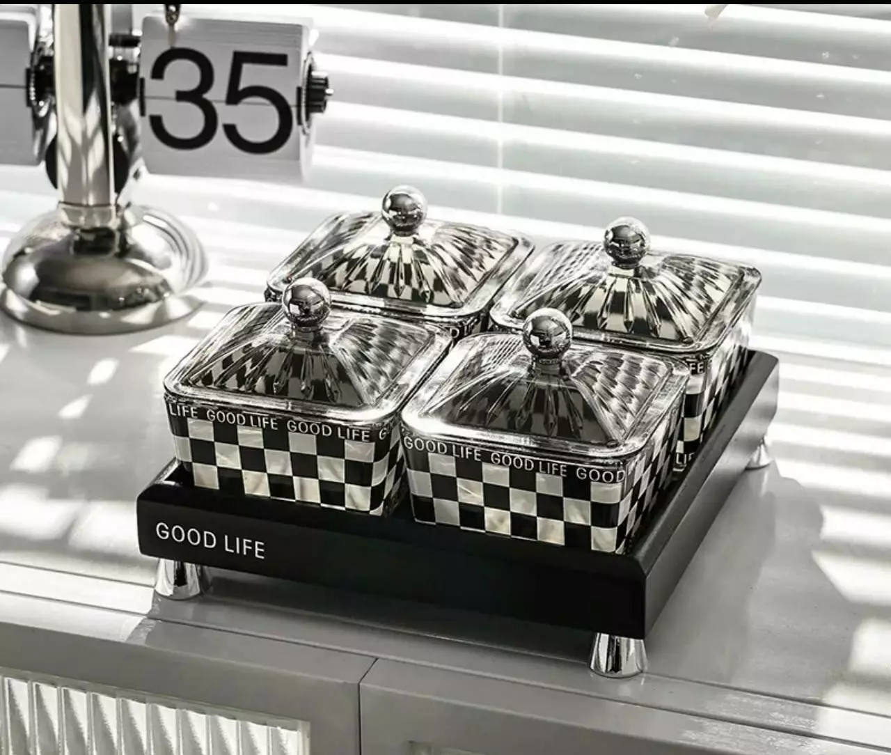 Представляємо Вам набір із чотирьох вазочок у чорно-білому