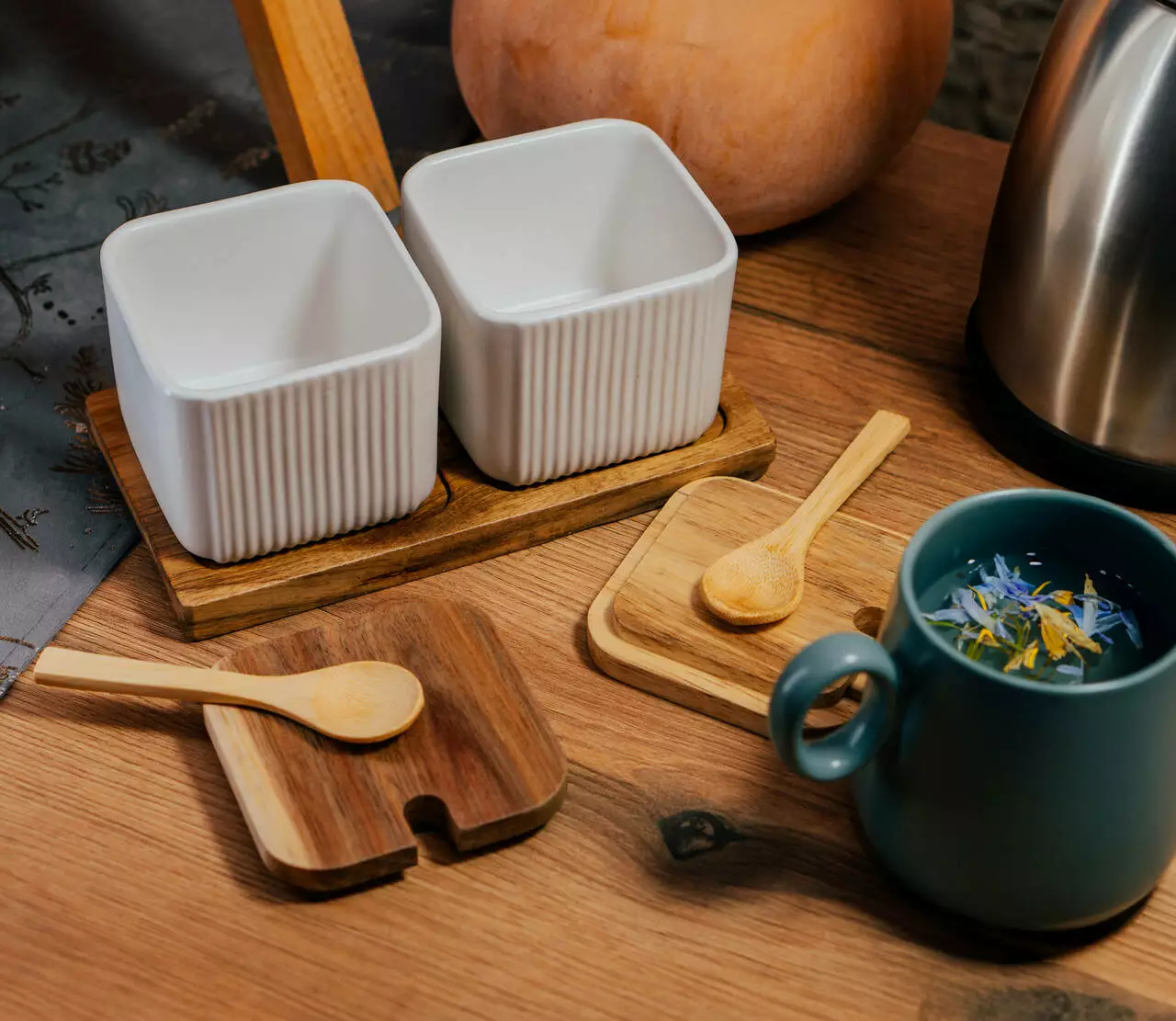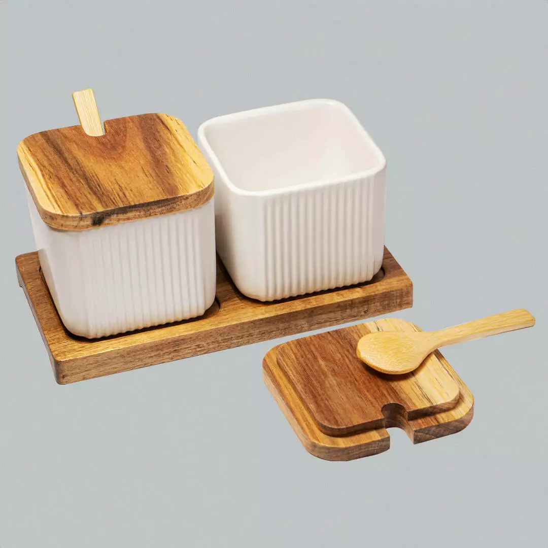 Комплект доповнюється дерев'яною тацею, яка не тільки полегшує