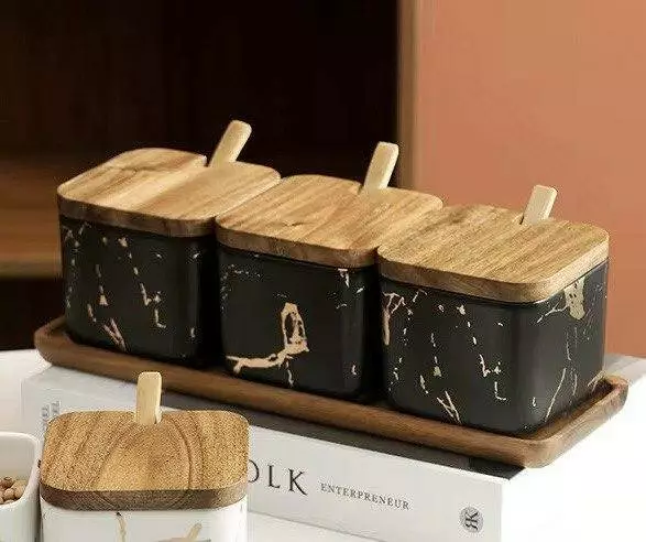 Цей розкішний набір керамічних баночок в елегантному чорному