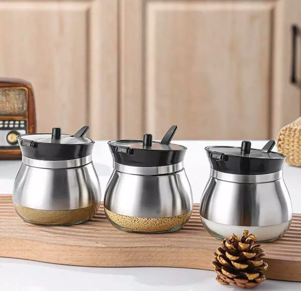 Цей комплект включає три стильні вазочки з кришками, а також
