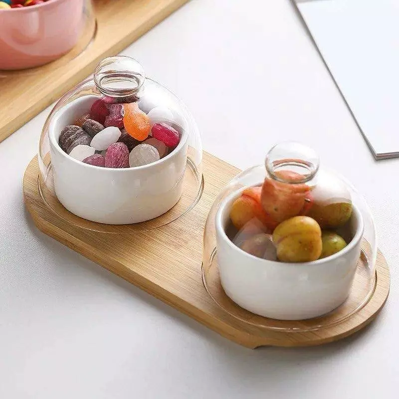 прозорими скляними кришками та елегантним дерев'яним підносом.