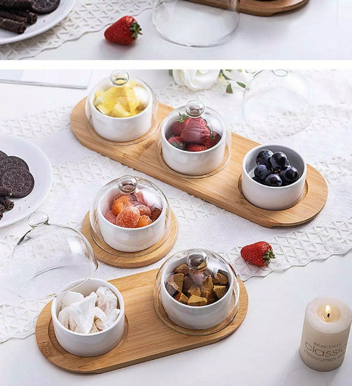 Комплектація: піднос, 3 вазочки, 3 кришки