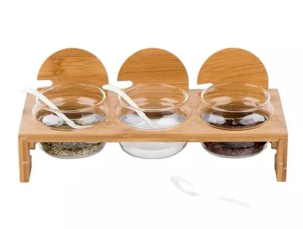 Комплектація: підставка, 3 вазочки, 3 кришки, 3 ложки