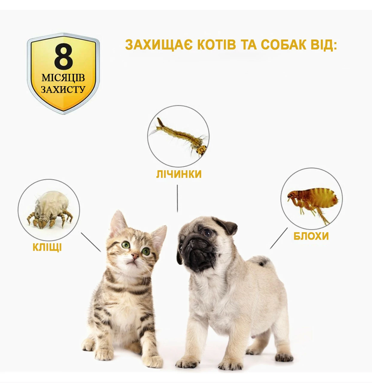 домашнього улюбленця від блох, вошей та різновидів кліщів. Також