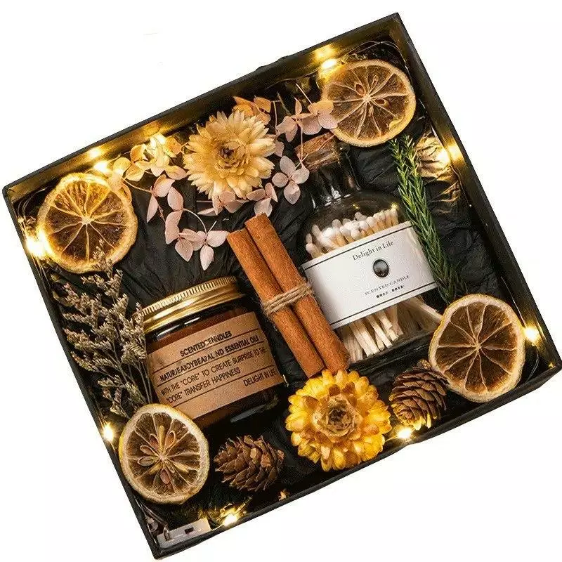 квіти, сухофрукти, кориця. Додатково у наборі є гірлянда. Свічка та