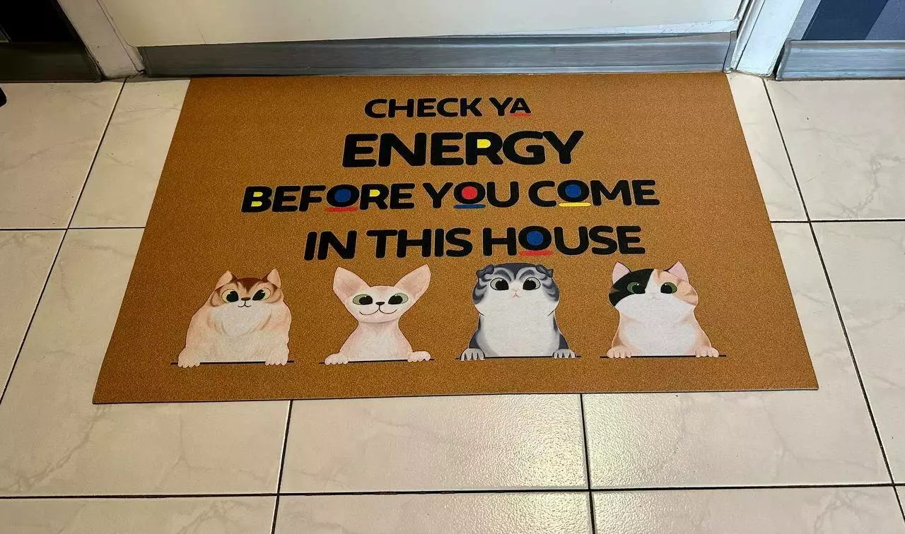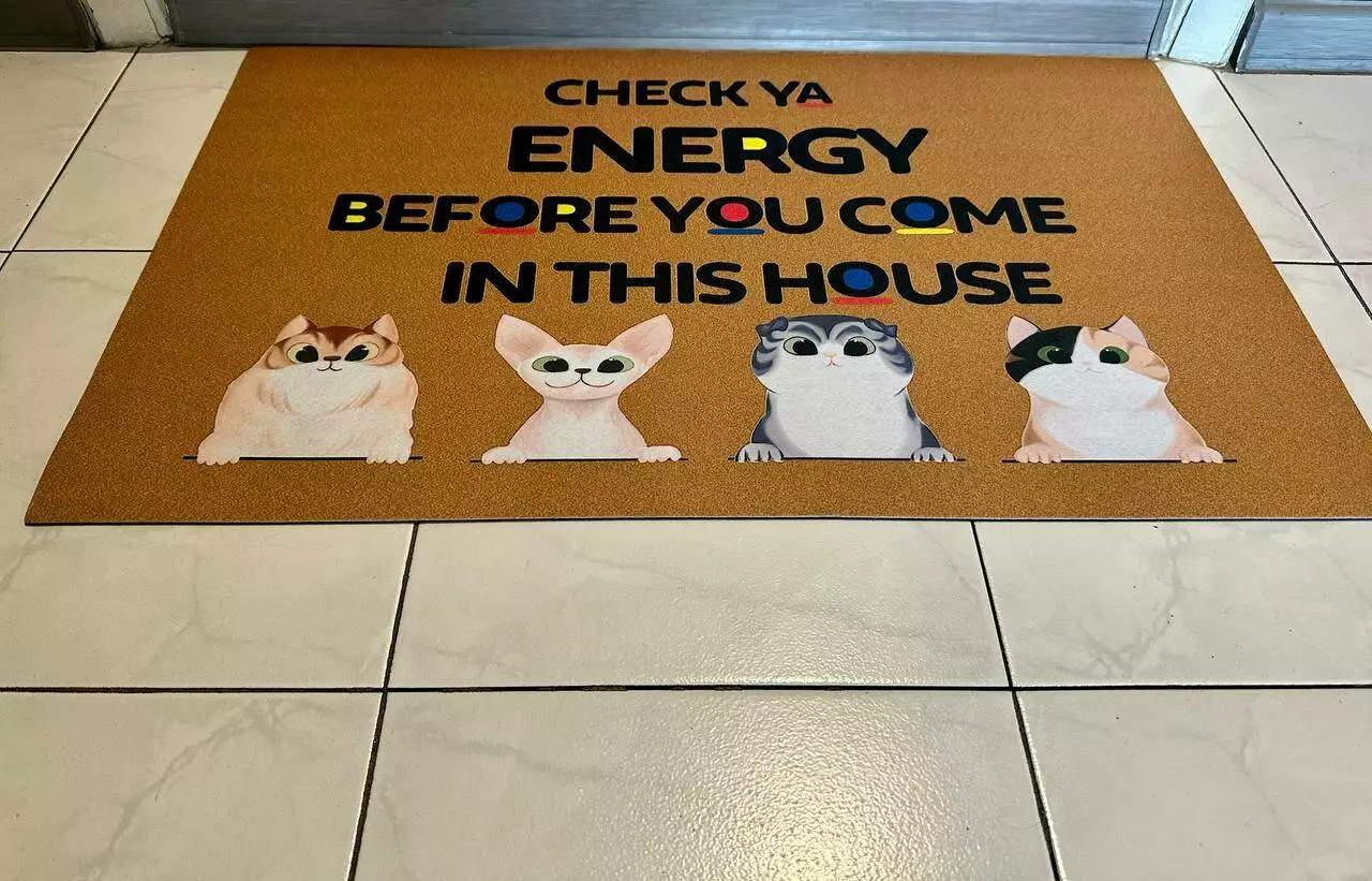 Придверный коврик с веселым принтом , который точно понравится владельцам кошек. Такой придверный коврик будет привлекать к себе внимание и радовать всех , кто переступает порог дома.