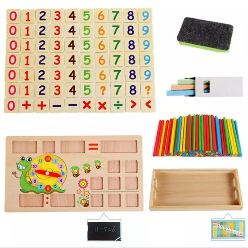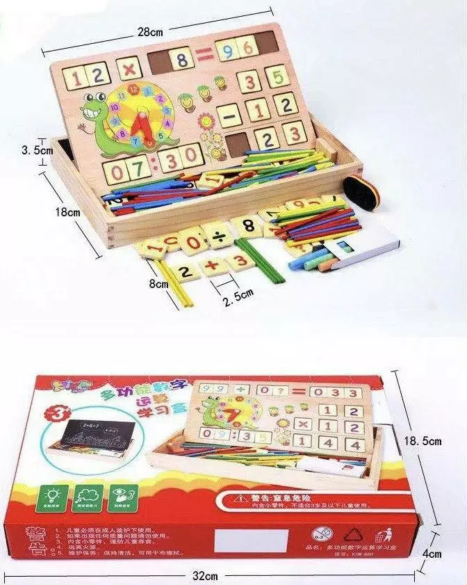 Комплектація: дерев'яна коробка, цифри / математичні знаки,