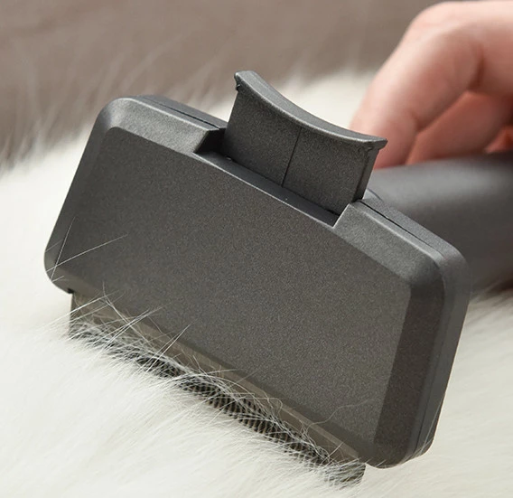 Пуходірка. Це щітка для собак із кнопкою самоочищення. На гребінці