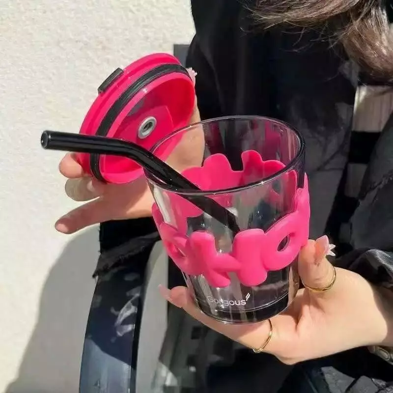 Цей сірий скляний склянку, об'ємом 350 мл, з трубочкою поєднує в
