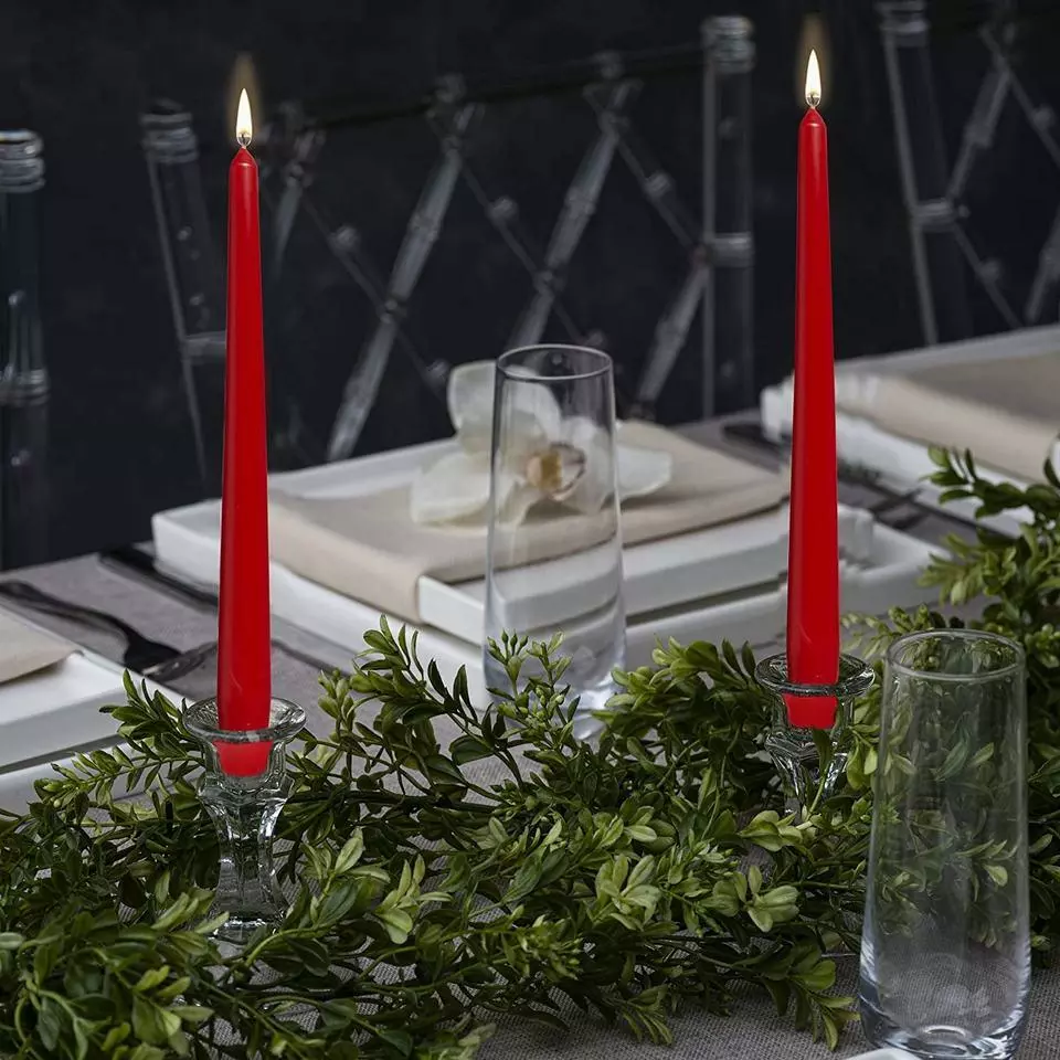 Червоні столові свічки конусної форми прикрасять Ваш святковий стіл