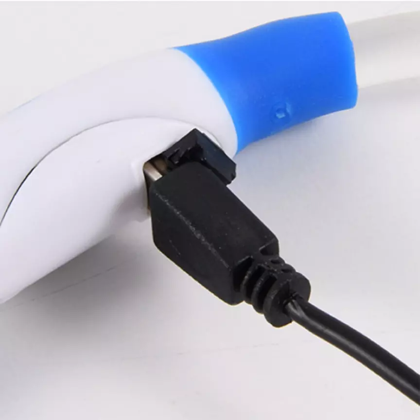 просто – у комплекті є кабель USB. На самому нашийнику розташована