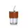 Термостакан універсальний із трубочкою скляною 400 мл із вставкою екошкіри Коричневий